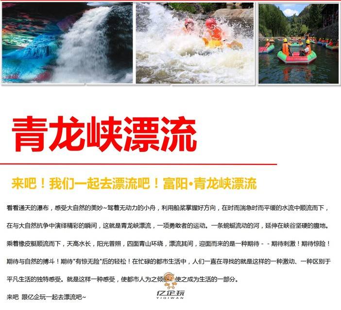 【轻拓休闲】来通天飞瀑感受大自然的美妙,来青龙峡和我们一起去漂流吧! [复制链接] 花花 发布于2018-08-22 16:54 1954 0 分享到 看看通天的瀑布,感受大自然的美妙~驾着无动力的小舟,利用船桨掌握好方向,在时而湍急时而平缓的水流中顺流而下,在与大自然抗争中演绎精彩的瞬间,这就是青龙峡漂流,一项勇敢者的运动。