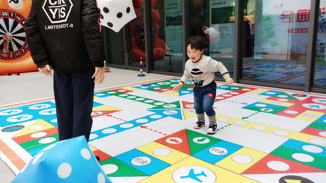 小朋友掷骰子,家长当棋子